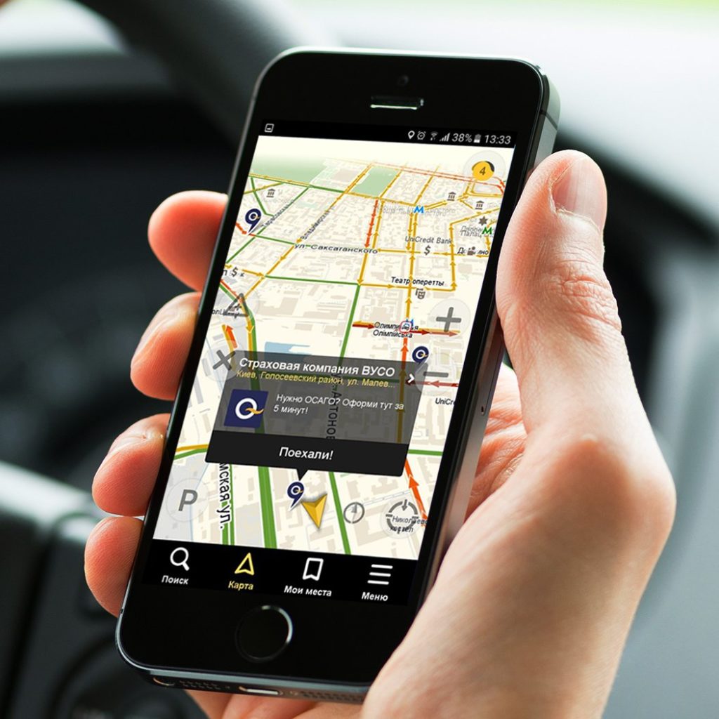 Service gratuit pouvant être installé sur n'importe quel smartphone. Cependant, il convient de noter que la demande n'est valable qu'en Russie. Très populaire dans les grandes villes. En sortant de la ville, il peut donner des informations générales, sans indiquer les objets et les panneaux de signalisation.