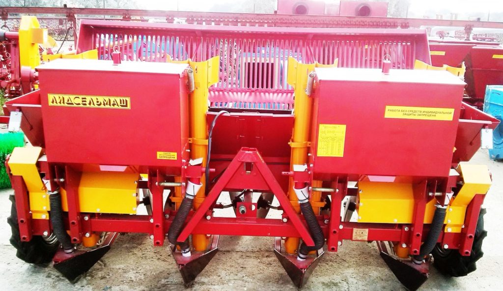 La structure articulée est utilisée pour planter des pommes de terre en rangées sur des parcelles de terrain d'une grande superficie. Il est capable d'appliquer simultanément des engrais de type minéral. Fonctionne sur tout type de sol. La distance entre les rangs est réglable : 90, 75 ou 70 centimètres. Il est agrégé avec des tracteurs de la classe MTZ - 100/102 ou MTZ - 80/82.