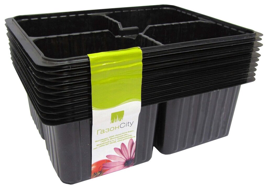 Le rapport largeur, longueur et hauteur est de 18x13,5x6 cm, le nombre de cellules est de 6 pièces. Le récipient est en polystyrène - un matériau absolument sans danger pour les germes.