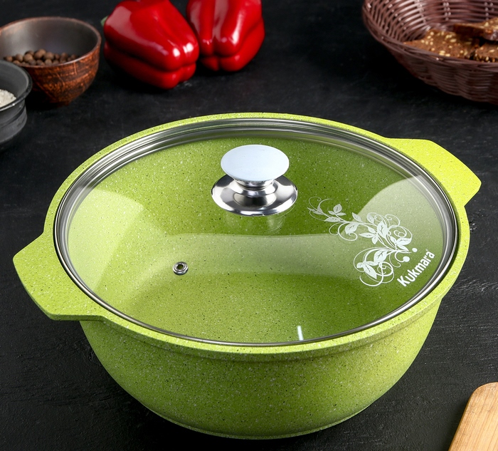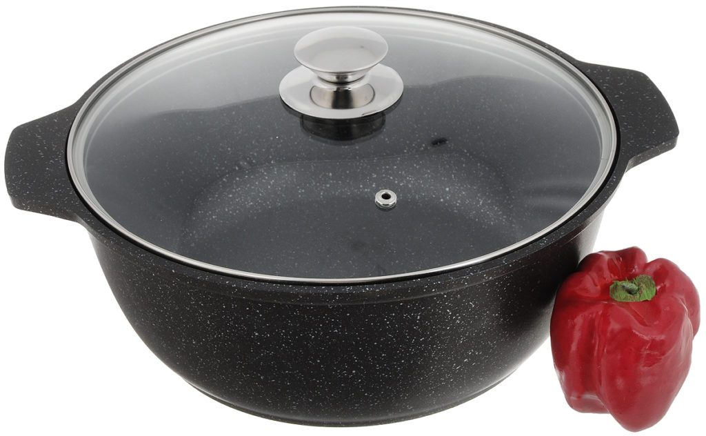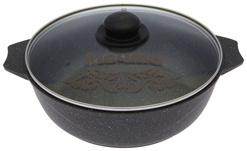 Le revêtement antiadhésif empêche les brûlures. Par conséquent, même avec une petite quantité d'eau, les produits sont cuits et acquièrent un goût riche. Les plats peuvent être utilisés à la fois pour la cuisinière et sur un feu ouvert, ils sont faciles à nettoyer et ne rayent pas. Le couvercle en verre est équipé d'une poignée confortable qui ne chauffe pas.