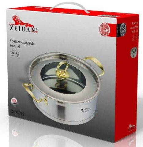 Une casserole en acier est idéale pour les plaques à induction. La grande contenance de la poêle lui permet d'être utilisée pour une famille nombreuse. Le bas à trois couches encapsulé vous permet de rester au chaud pendant longtemps.Extérieurement, la casserole a un aspect attrayant et est facile à nettoyer. Le modèle a une bonne capacité de 4,2 litres et est idéal pour les utilisateurs qui ont des litas à induction.