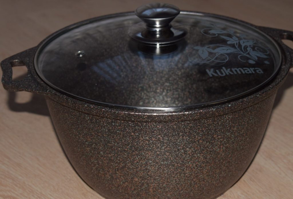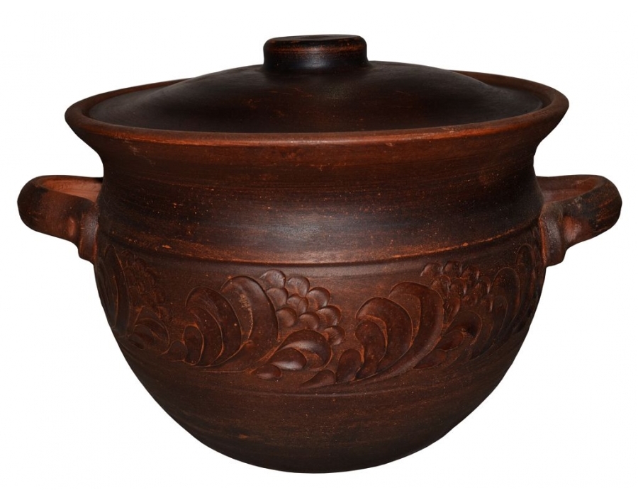 Un brasier élégant plaira à presque toutes les hôtesses. La capacité du bidon est de 3 litres. Extérieurement, le produit est décoré d'un motif élégant. Des poignées pratiques vous permettent de déplacer le conteneur dans la bonne direction. Le couvercle est bien ajusté, de sorte que les plats ne perdent pas leur jutosité et cuisent dans leur propre jus.