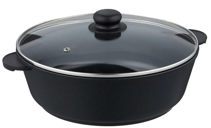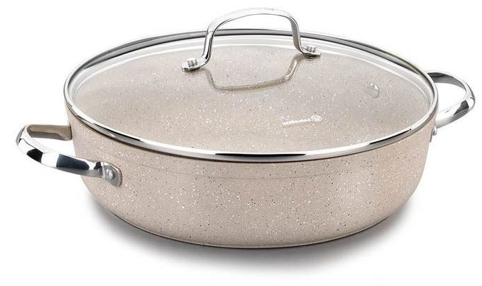 Le pan-brasero est fabriqué de manière moulée, il servira donc sans perdre son apparence pendant de nombreuses années. La casserole peut être utilisée pour la cuisson dans un four à gaz ou sur un feu ouvert. La couche antiadhésive en marbre prévient le risque de brûlure des aliments. En conséquence, les plats sont juteux avec un goût riche.