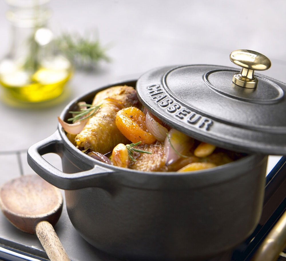 Récipient approprié pour la cuisson au four ou sur un feu ouvert. La fonte chauffe uniformément et retient la chaleur pendant une longue période. Une forme spéciale et pratique vous permet de cuire un poulet ou un canard entier, sans que le plat ne perde sa jutosité. Malgré le fait que la capacité de la vaisselle soit de 2,2 litres, le produit est très apprécié des cuisiniers.