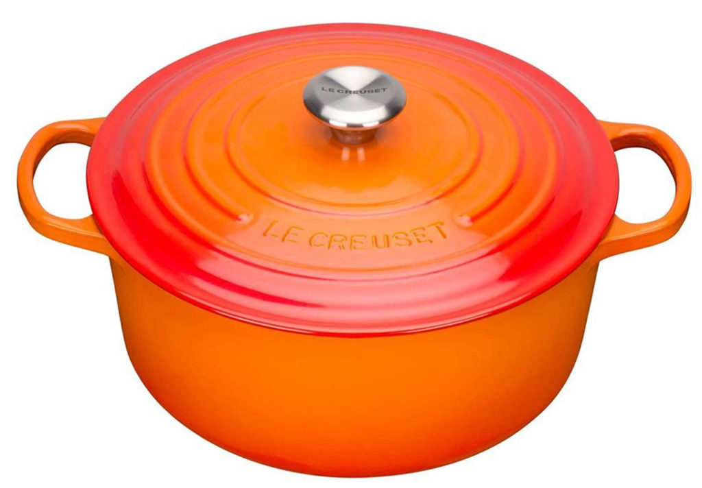 Le Creuset peut être utilisé sur tous les types de feux, adapté à la plaque à induction et au four, il peut également être utilisé pour les grillades en plein air. Quant à l'entretien, il peut être lavé à la main et au lave-vaisselle, sans utiliser d'abrasifs ni de brosses métalliques. Pour que le produit serve longtemps, il n'est pas recommandé de l'exposer à des changements brusques de température. Le diamètre est de 26 cm Poids - 2,5 kg. Disponible dans une variété de couleurs (couleur "lave ardente", "amande", "meringue", bleu, cerise, bleu ciel, vert et autres). Le coût moyen est de 31 900 roubles.