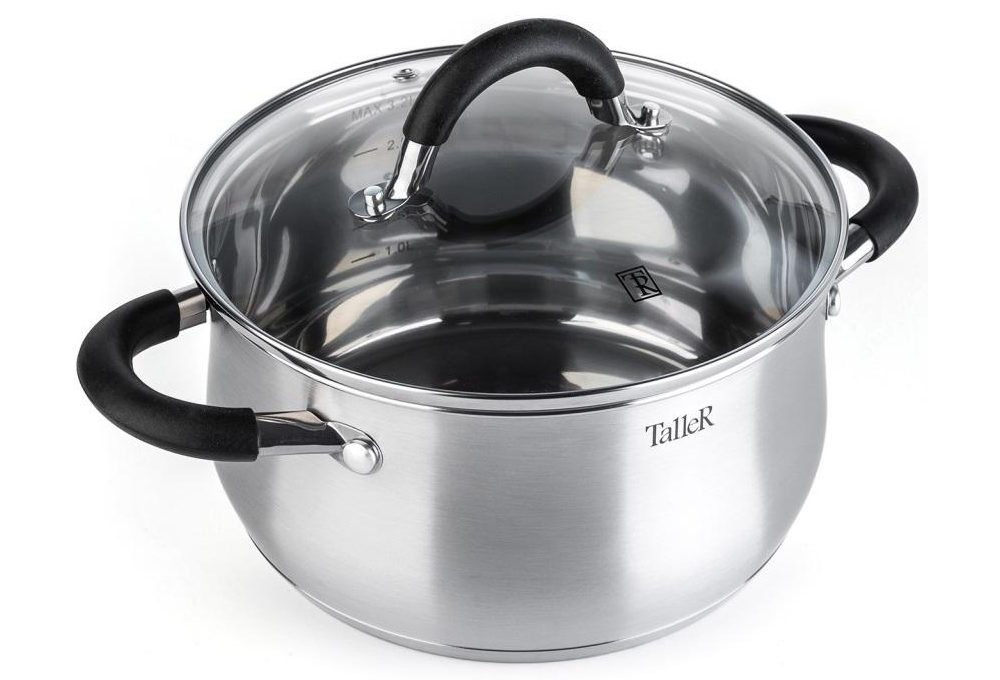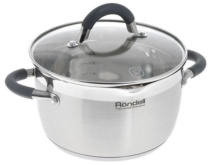 Modèle arrondi classique, fabriqué dans le style anglais traditionnel. La conception du fond est encapsulée, équipée d'un insert en aluminium, qui vous permet de répartir uniformément la chaleur. Le kit comprend un couvercle en verre résistant au feu, équipé d'une sortie de vapeur et d'un rebord en acier hermétique. Taller Shelborne convient à une cuisinière à induction, mais vous ne pouvez pas le mettre au four - les poignées latérales interfèrent. Le diamètre est de 200 mm. De plus, il dispose d'une échelle de mesure. Les poignées sont équipées de patins en silicone. Le coût moyen est de - 2 052 roubles.