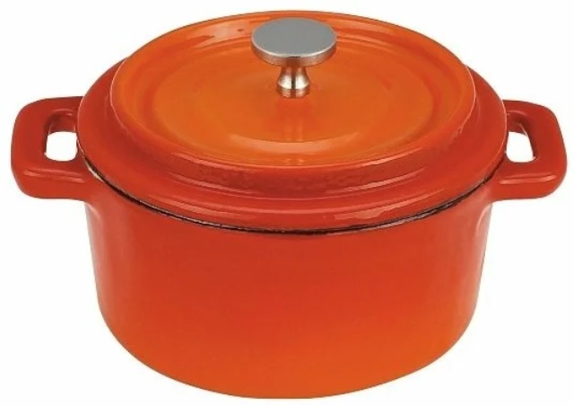 Modèle, réalisé dans une couleur orange vif et juteux. L'intérieur a un revêtement lisse qui empêche les aliments de coller ou de brûler, de sorte que le produit est facile à nettoyer.Le couvercle s'adapte parfaitement au bord, maintenant un chauffage uniforme - cela préserve les propriétés bénéfiques des produits et améliore le goût du plat fini. Vitesse Ferro peut être utilisé avec une plaque à induction ou placé au four. Le diamètre est de 10 cm, l'épaisseur de paroi est de 3,5 mm et le poids est de 1,19 kg. Le coût moyen est de 1 149 roubles.