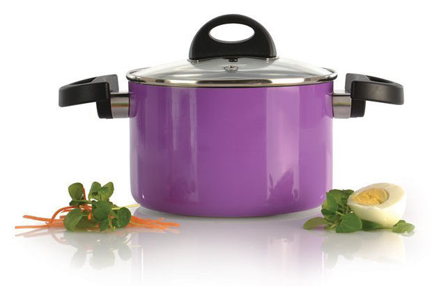 Fabriqué à partir d'aluminium laminé, le revêtement antiadhésif Ferno Green empêche les ingrédients de coller à la surface de travail. De plus, la présence d'un tel revêtement vous permet de cuisiner sans utiliser d'huile, ou avec une quantité minimale de celle-ci. Il n'y a pas de revêtement gras sur la surface, il se nettoie facilement avec des détergents doux. Il n'est pas recommandé de laver le produit au lave-vaisselle. Couvercle en verre inclus. BergHOFF Eclipse convient à tous les types de plaques de cuisson, y compris l'induction. Le diamètre est de 16 cm et est disponible en quatre couleurs - orange, beige-gris, violet et citron vert. Le coût moyen est de 3 250 roubles.