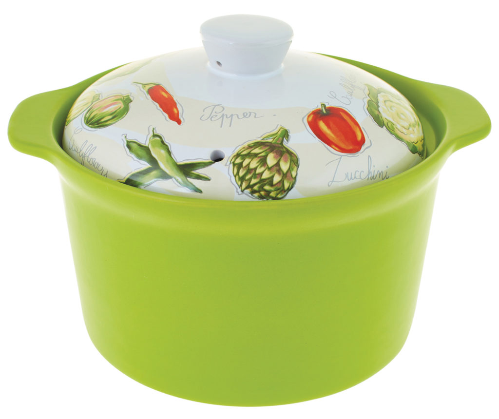 Modèle coloré élégant avec un design exclusif qui peut devenir une décoration de la cuisine. Le matériau du produit est totalement sûr, a une composition naturelle et une résistance particulière. Il ne perd pas ses propriétés d'origine lors d'un fonctionnement à long terme. Appetite Vernazza Gratin convient pour mijoter, bouillir, frire et faire des soupes. Le couvercle est également en céramique, s'adapte solidement aux bords et est équipé d'un évent à vapeur.Convient non seulement pour préparer une variété de plats, mais également pour conserver les aliments au réfrigérateur. Convient à tous les types de feux, sauf à induction, ainsi qu'au micro-ondes et au four. De plus, il peut être lavé au lave-vaisselle. Épaisseur du fond - 10 mm, murs - 8 mm. Couleur verte avec du blanc. Le coût moyen est de - 1 730 roubles.