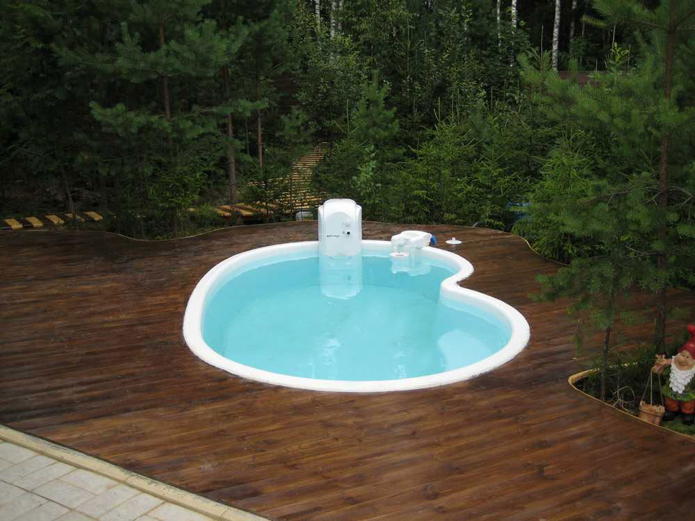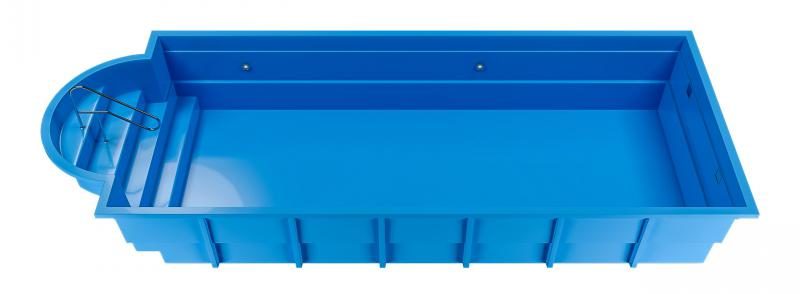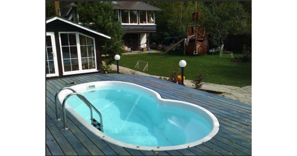 Fabriqués selon la technologie allemande, les produits de la société Composite Group se distinguent par une forme géométrique complexe et un emballage pratique. Des marches sont prévues dans l'un des coins, tandis que des sièges sont prévus dans les trois autres. Paramètres - 8 x 3,6 m, profondeur - 1,5 m Poids - 800 kg.