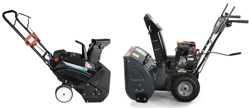 1. Tarières à un étage - sans roue, avec une tarière lisse et une éjection jusqu'à cinq mètres pour nettoyer la couverture fraîchement tombée.