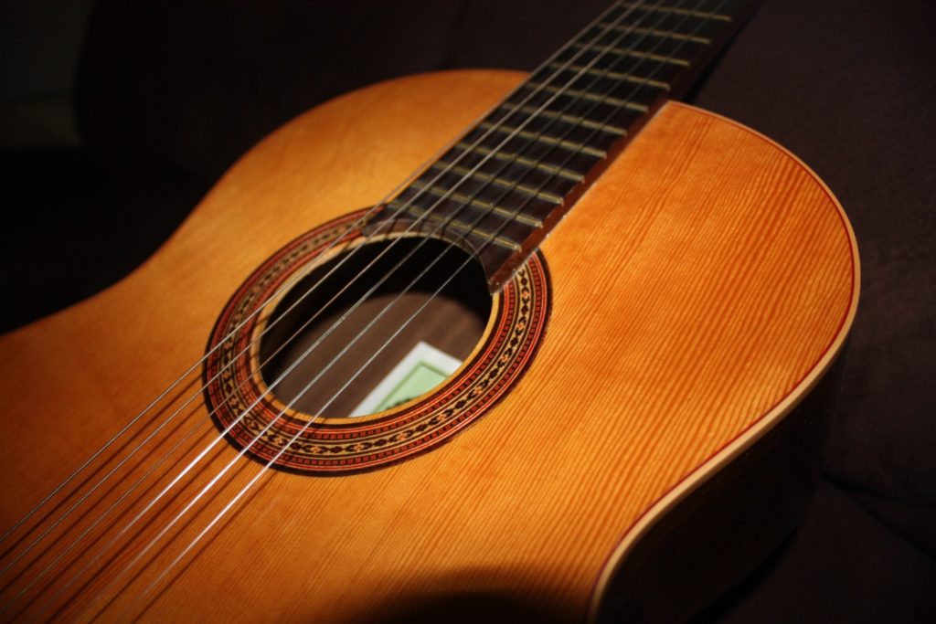 La guitare classique (espagnole, six cordes) est un instrument à cordes pincées, qui est le principal représentant parmi les appareils classiques et acoustiques. Il est utilisé comme accompagnateur, pour des performances en solo ou dans la reproduction d'ensemble de mélodies musicales. Dans sa forme traditionnelle, il trouve son origine à la fin du XVIIIe siècle. L'instrument est doté de grands avantages, notamment de nombreuses possibilités de jeu, ainsi que d'une incroyable variété de timbres. La différence entre une guitare conventionnelle et une guitare acoustique réside dans les cordes en nylon, la configuration large du manche et du corps.