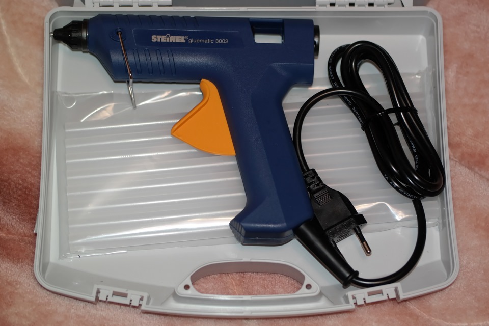 Il a une puissance de 5 W, léger et compact, le boitier est en plastique, assez solide. Le long cordon de connexion au réseau ne limite pas les mouvements en raison de sa longueur, ce qui est très pratique lorsque vous travaillez avec l'appareil. Pour assurer la stabilité et protéger la surface de la table de la colle chaude, le pistolet est doté d'un pied rétractable.
