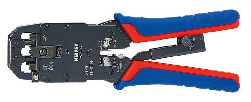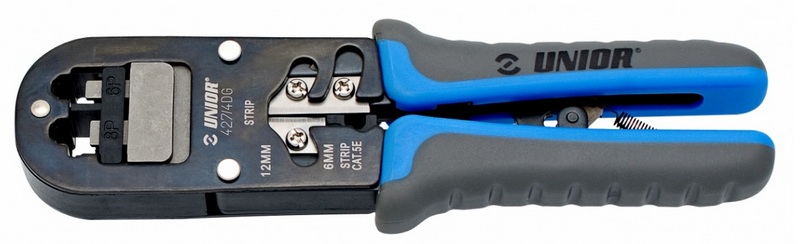 Cet appareil est de type universel et est destiné à retirer le revêtement isolant des câbles ronds et des fils téléphoniques plats non blindés. Il peut également être utilisé pour sertir des fiches à quatre, six et huit pôles. Dans la conception de l'outil de sertissage, un couteau longitudinal et un couteau pour retirer la gaine isolante sur des longueurs de six et douze millimètres sont installés. La force appliquée pour le crantage/sertissage est augmentée grâce au levier de transmission, ce qui réduit qualitativement l'indicateur de consommation d'énergie de la part de l'installateur-opérateur. Le coût établi pour le réseau de vente au détail est de 13 700 roubles.
