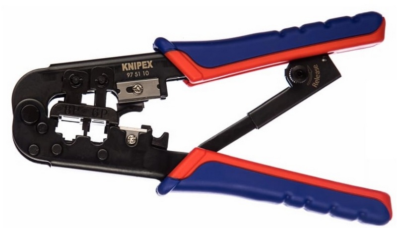 Dispositif spécialisé pour travailler avec des systèmes de câbles structuraux. Il peut fonctionner non seulement avec le connecteur d'ordinateur RJ45 le plus populaire, mais est également capable de sertir des fils basés sur des connecteurs téléphoniques RJ11-12 "d'âge moyen".En raison de son faible poids (seulement 350 grammes), il est très pratique pour le transport et le stockage. Le fabricant offre une garantie d'un an pour l'instrument. Le coût recommandé pour les chaînes de magasins est de 1030 roubles.