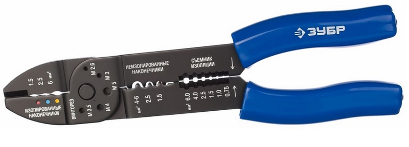 Ce modèle est un brillant représentant d'un outil de sertissage peu coûteux et en même temps polyvalent. La partie travaillante est conçue de manière à vous permettre d'effectuer de nombreux travaux avec des câbles filaires. L'outil est parfaitement adapté pour le décapage, le décapage à un niveau de finition, auquel le risque d'endommagement du noyau lui-même est minime. Capable de sertir des embouts isolés/non isolés et même de couper des boulons en laiton. Le prix de vente conseillé est de 520 roubles.