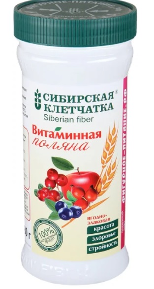Ce produit de la société "Siberian fiber" est utilisé comme complément pour se débarrasser de l'excès de poids. En plus des coques de grains de blé, sa composition comprend des myrtilles, des airelles et des canneberges, ainsi que des cynorrhodons et des pommes.