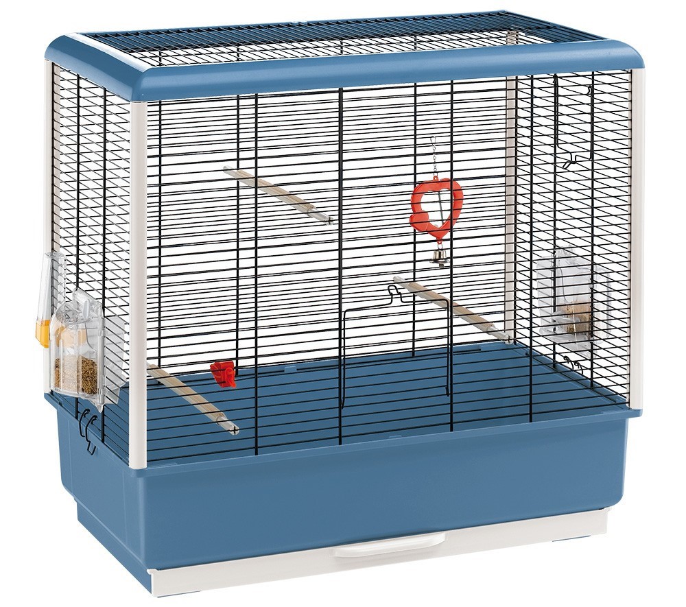 Le modèle a tous les accessoires nécessaires pour un canari. L'ensemble comprend 3 mangeoires et des supports spéciaux pour les légumes et les fruits.