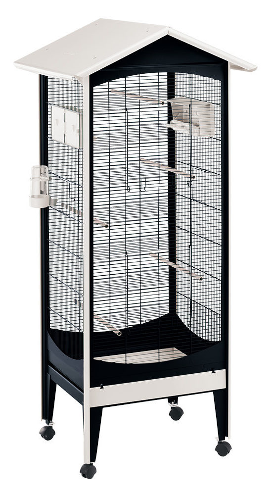 Ce modèle est idéal pour les personnes qui ont de nombreux animaux de compagnie. La cage canari est élégante et compacte. Souvent, la volière est utilisée pour pouvoir l'installer sur une véranda ou un balcon ouvert. Des roues spéciales facilitent le déplacement de la structure.