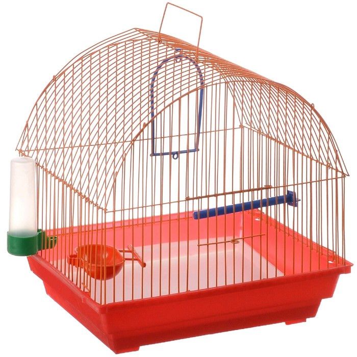 La conception semi-circulaire sera la maison parfaite pour un canari.Le modèle est peint dans une couleur vive et contient tous les accessoires nécessaires. La conception du produit est pensée de manière à ce que l'oiseau puisse admirer les environs. L'intérieur de la cage est spacieux, de sorte que le canari se déplace librement.