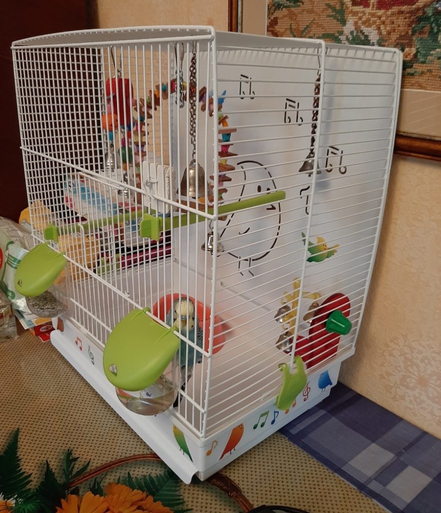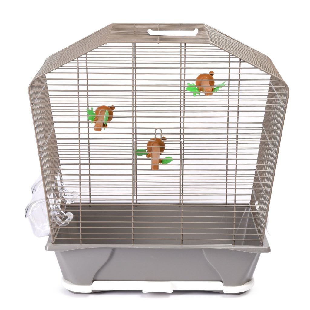 La distance entre les barres est de 10 mm, de sorte que l'oiseau n'est pas endommagé, même pendant le vol actif à l'intérieur de la cage. Le plateau profond est en plastique adapté aux animaux de compagnie. La partie inférieure du plateau est rétractable, il est donc facile de nettoyer les restes de nourriture.