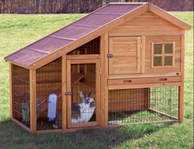 La mini-ferme comprend toutes les commodités dont votre lapin a besoin. Il peut être utilisé aussi bien à l'extérieur qu'à l'intérieur de la maison. Le principal avantage est la solidité et la durabilité du modèle. Le principal matériau de fabrication est le bois de pin du nord, qui provient de forêts spécialement désignées pour ces forêts. Il est protégé par un revêtement hydrofuge, résistant à la moisissure et aux UV, sans danger pour l'homme. Pour augmenter la durée de vie d'une structure en bois, les planches doivent être soigneusement emboîtées et vissées entre elles. La cage est à deux niveaux et divisée en plusieurs zones, conçues pour répondre aux besoins de l'animal tout au long de la journée.
