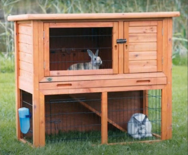 Il s'agit d'une grande structure dont les dimensions permettent de garder deux animaux à la fois. La principale caractéristique est que la palette, ainsi que les caillebotis métalliques, peuvent être complètement démontés. Il est vendu dans un emballage compact, ce qui facilite grandement le transport. Une fois assemblé, c'est une habitation spacieuse qui est très facile à nettoyer. Le modèle a de petites portes. Le kit comprend également tous les accessoires nécessaires : un bol, un abreuvoir, une mangeoire et une maison en plastique. La conception est facile à monter et à démonter grâce aux pinces. Un autre avantage du modèle est la présence d'une cloison qui permet d'isoler l'animal.Le matériau de la grille est résistant aux dents de votre animal, car il est composé d'une barre métallique et recouvert d'une peinture protectrice. Prix moyen : 10 526 roubles.