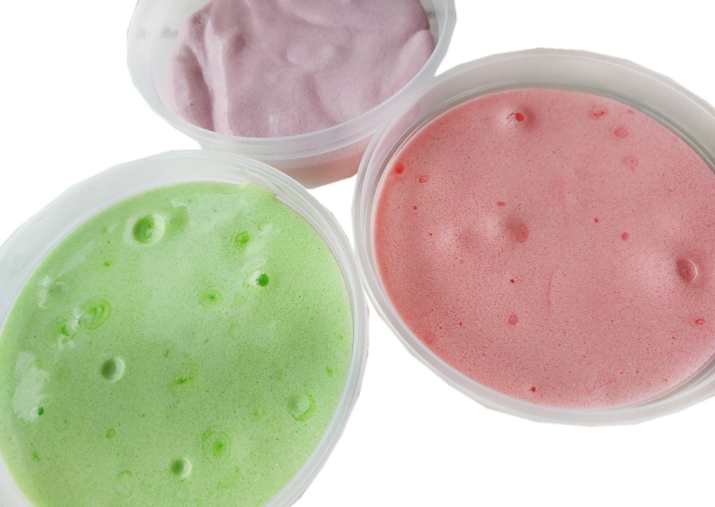 Composants : shampoing ou savon liquide, PVA, colorant.