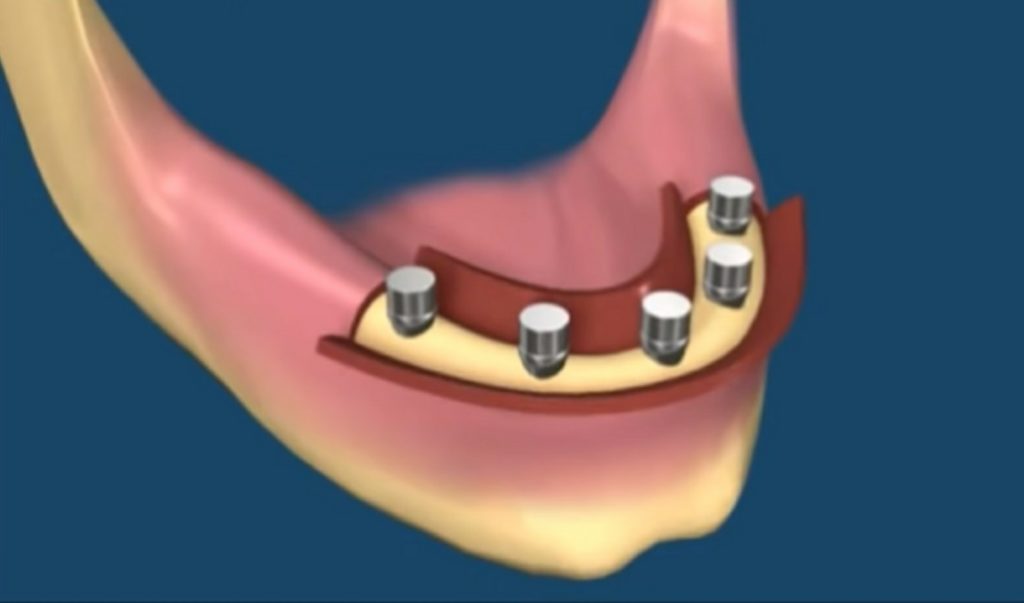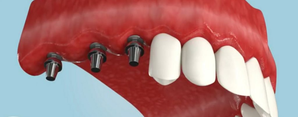 En l'absence de volume osseux impossible à augmenter et de plusieurs dents à remplacer, des implants basaux sont posés. Ils sont fixés dans les couches profondes de l'os sur le côté, après quoi des ponts sont immédiatement posés dessus. La fiabilité d'une telle conception n'est pas à cent pour cent.
