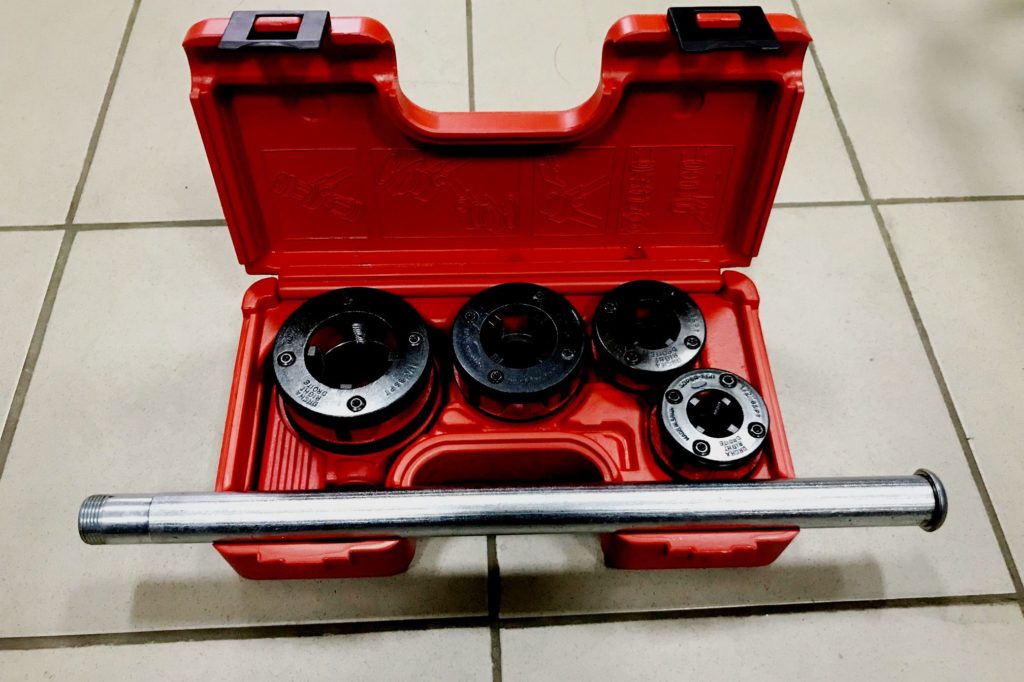 Le fabricant a lancé la production de produits pour le filetage. La puissance de l'appareil est de 1,35 kW, il fonctionne à des températures de -10 à +40 degrés. La vitesse de rotation maximale est de 32 tr/min. Se branche sur l'alimentation domestique. Le poids de l'ensemble est de 15 kg, dont le poids du variateur est de 6 kg. Les têtes peuvent être installées à gauche et à droite. Vendu avec matrices pour filetages ½, ¾, 1, 1 1/4". L'ensemble comprend également un graisseur, une pince, un ensemble de têtes de filière et une mallette de transport.