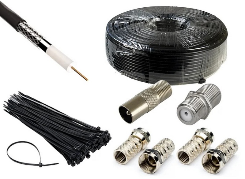 Pour la transmission de signaux de télévision et vidéo. Ensemble : connecteur F - 4 pièces, prise TV - 1 pièce, connecteur de câble (baril) 1 pièce, pince (pince) noire 100 x 2,5 - 100 pièces. Un ensemble complet avec une baie suffisamment longue qui permet de créer immédiatement un petit réseau. Le consommable est composé de matériaux durables de haute qualité. Conducteur intérieur en fil d'acier cuivré d'un diamètre de 1 mm. Le diélectrique est en mousse de polyéthylène. Écran sous forme de feuille d'aluminium continue. Conducteur extérieur en fil d'aluminium sous forme de tresse (diamètre du fil 0,12 mm, densité 42%). Gaine extérieure en PVC. Le coût recommandé pour les chaînes de magasins est de 1762 roubles.