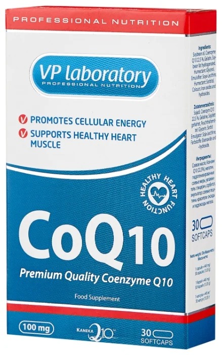 Les indications d'utilisation des compléments alimentaires "Coenzyme Q10 vplab CoQ10" sont l'hypertension artérielle, le risque de développer un infarctus du myocarde et une maladie coronarienne, une faible immunité. Il aidera à prévenir le développement de l'athérosclérose, l'oxydation du cholestérol et à augmenter le niveau d'énergie dans les tissus chez les athlètes lors d'efforts physiques intenses. Selon les acheteurs, cet outil soutient parfaitement le tonus général du corps après 40 ans et contribue à son rajeunissement. L'emballage, dont le prix moyen est de 640 roubles, contient 30 gélules contenant chacune 100 mg d'ubiquinone, de l'huile de soja pour une meilleure absorption et biodisponibilité, de la glycérine, du sorbitol, de la gélatine, de la lécithine (soja) et des colorants. Il est nécessaire de prendre le supplément 1 fois par jour.