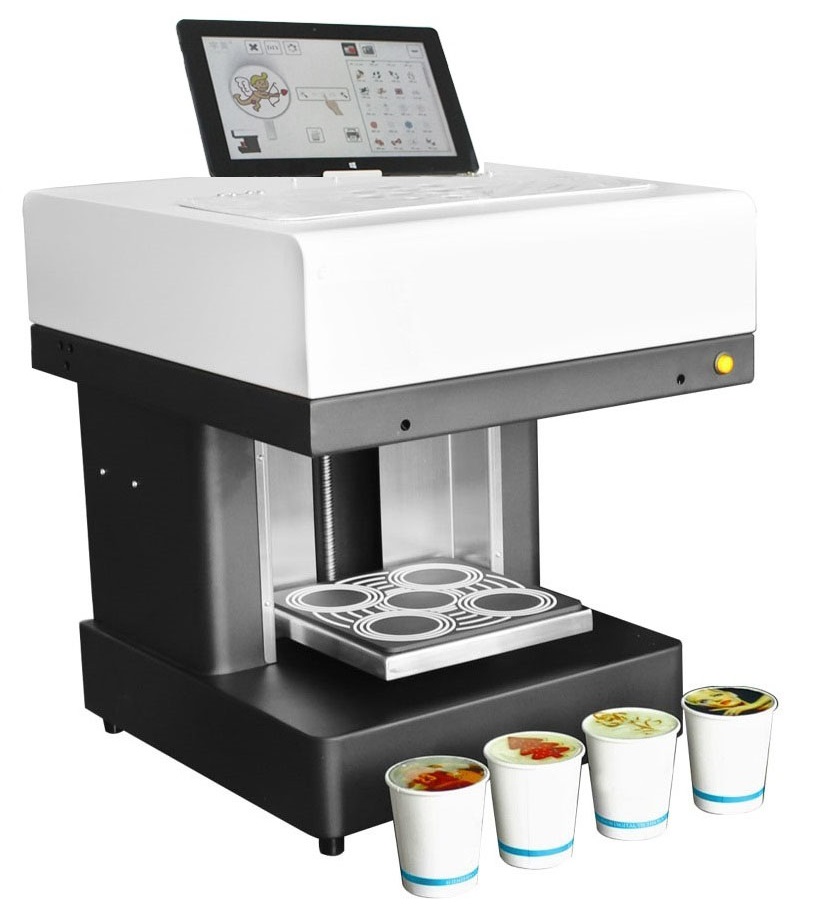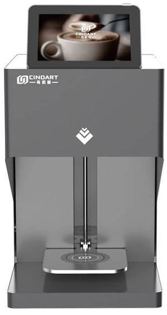 Une marque chinoise, l'appareil imprime bien sur toutes les boissons avec une mousse dense et des confiseries de petite taille. Peut fonctionner en mode noir et blanc et couleur. La palette se compose de couleurs bleu, jaune, rouge et marron. Il possède sa propre base de données, permet de charger des images à partir d'appareils mobiles. Limite de hauteur du support - 18 cm, zone d'impression - 11x11 cm, temps de dessin : de 10 à 20 secondes, selon la complexité et la teinte.