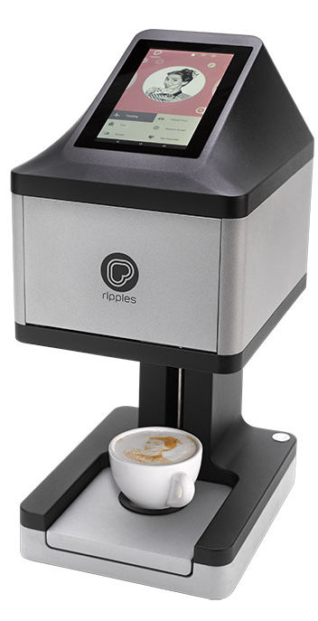 L'imprimante à café a été inventée assez récemment, mais a rapidement gagné en popularité et en distribution de masse. Au départ, seule l'impression en noir et blanc était disponible, la toile était en mousse de café, le rôle de l'huile était joué par l'encre issue de l'extrait de grains de café. Mais la possibilité d'imprimer en couleur n'était qu'une question de temps et elle est arrivée. La palette de couleurs est représentée par des colorants alimentaires multicolores, ils sont sûrs, comestibles, inodores, en un mot ils n'ajoutent rien à la boisson à l'exception de l'image. La popularité des motifs a migré vers d'autres types de produits, ce qui a conduit à l'émergence d'imprimantes qui impriment sur des fleurs, des ongles, des produits, et s'est terminée par des imprimantes universelles qui impriment sur tout.