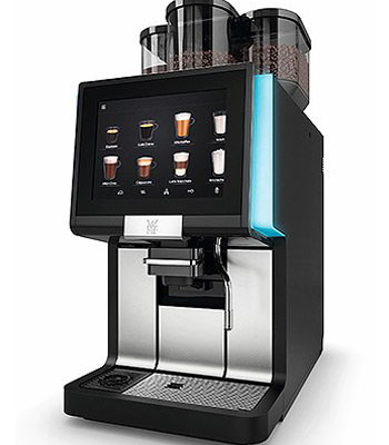 Machine à café de classe Premium, conçue pour un grand bureau, dont le personnel commence à partir de 100 personnes. L'appareil est directement raccordé à l'alimentation en eau. Contrôle tactile complet sur un grand écran. Pour faciliter la tâche de l'utilisateur, lors du choix d'une boisson, les ingrédients et la programmation s'affichent à l'écran. La possibilité de préparer deux tasses de boissons en même temps fait gagner du temps aux employés et évite les files d'attente à la machine à café. L'appareil est entièrement automatisé, à partir de la température de la boisson, se terminant par la fonction d'auto-nettoyage. Le bac d'égouttage est également autonettoyant. Tout en haut, il y a trois bacs : deux pour les grains de café, un pour le kayu ou la garniture.