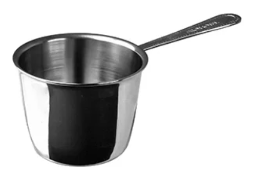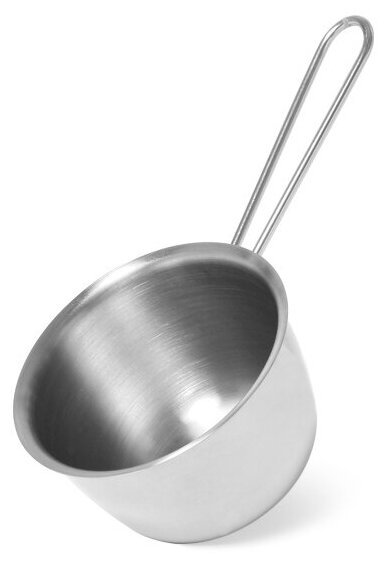 L'escroc numéroté 5279 est en acier et est un design arrondi avec une poignée en métal inhabituelle. Les dimensions de l'appareil sont de 7x4,5 et le volume est de 150 ml.