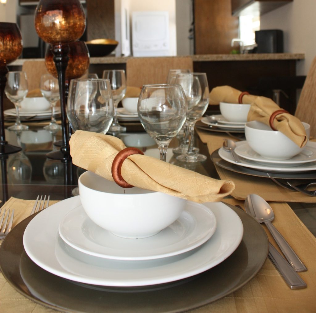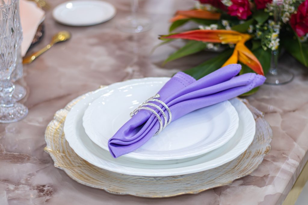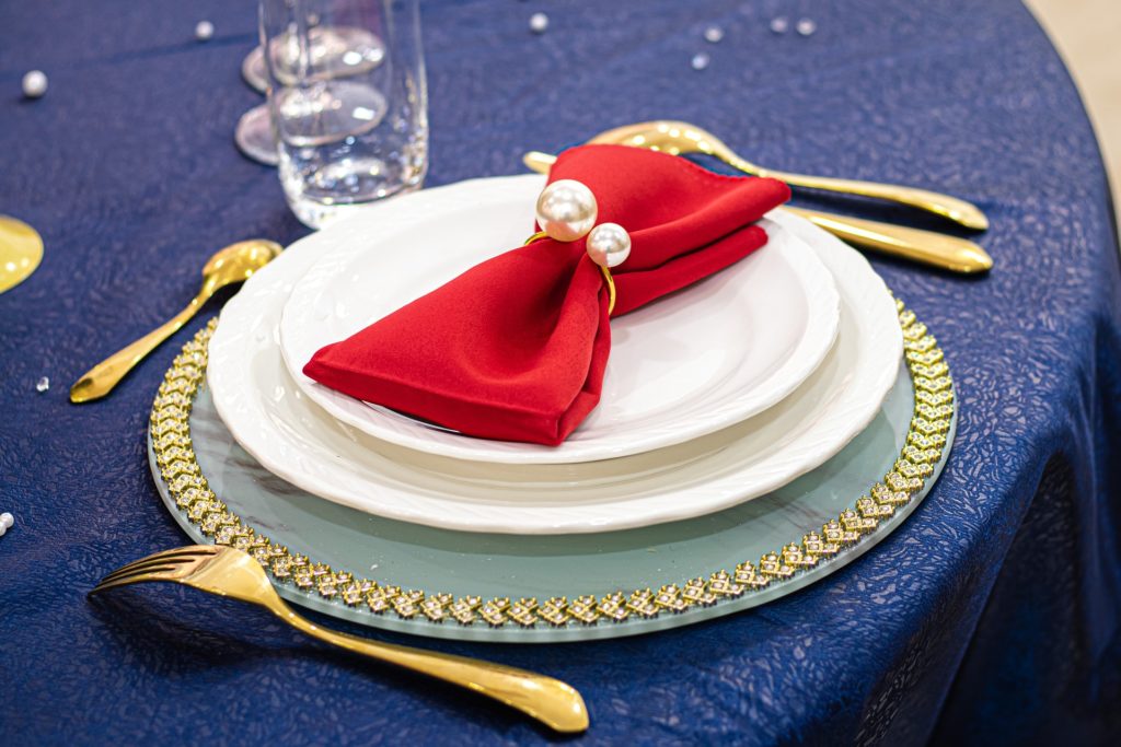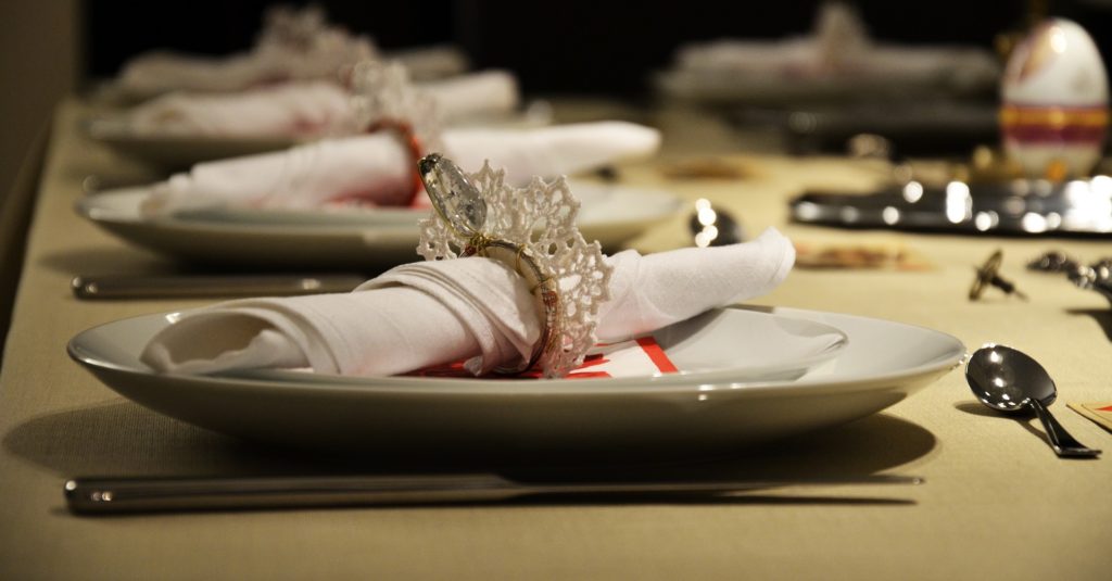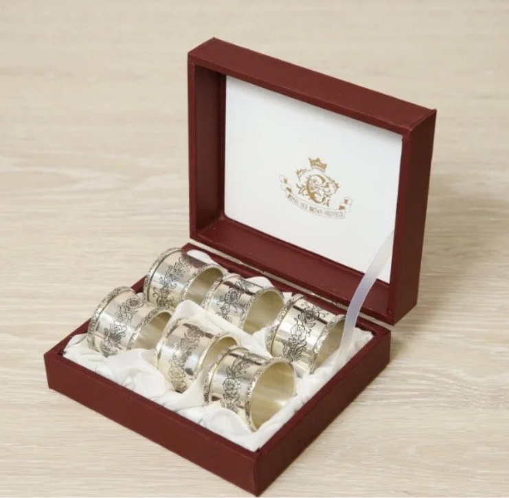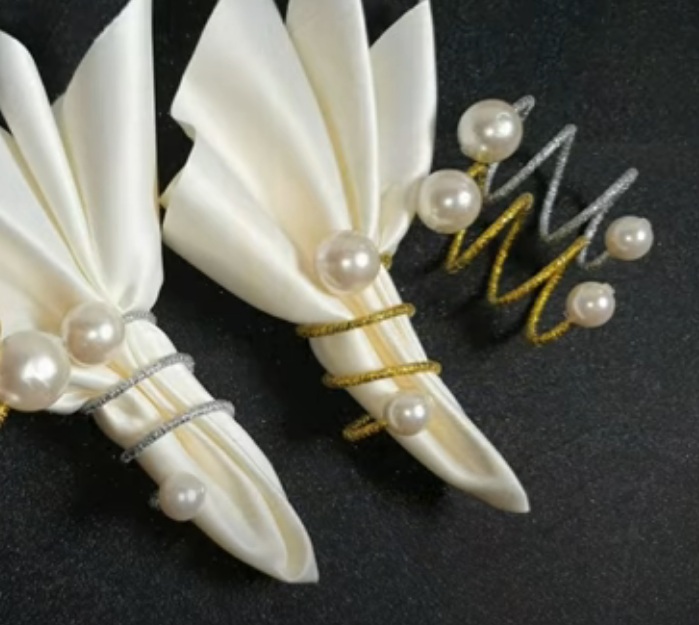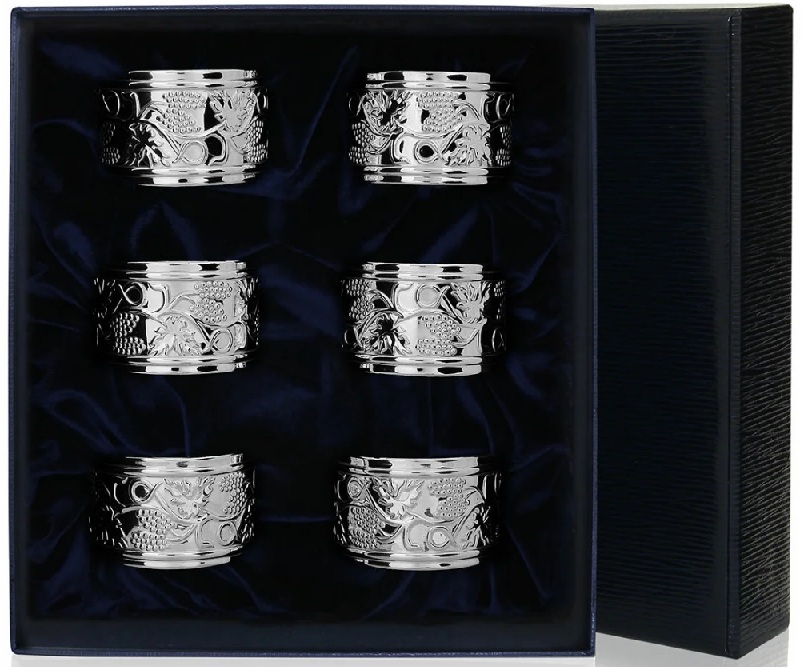 Les décorations en métal, plus souvent en argent, moins souvent en or, font écho favorablement à la vaisselle, aux éléments de motif sur la nappe et à la couleur générale de l'intérieur. Il est d'usage de n'utiliser qu'un seul métal pour les anneaux de la table.
