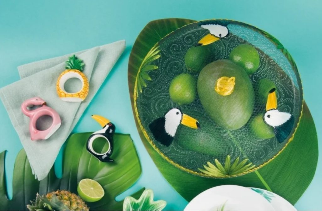 La collection tropicale est représentée par des ensembles de porte-serviettes figurés sous la forme de représentants de la flore et de la faune.