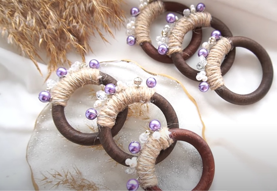 Les anneaux en bois sont respectueux de l'environnement et de la chaleur naturelle. Ils sont également utilisés avec succès à la maison et lors des fêtes. Pour un dîner modeste, ce décor peut apporter du romantisme, surtout lorsqu'il est associé à des bougies.