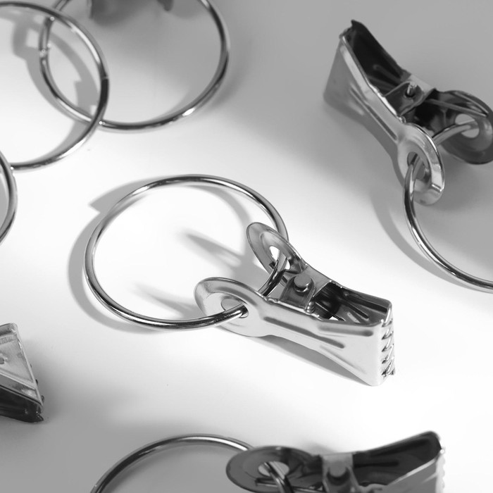 Les anneaux de rideaux modernes ont une pince à linge pratique pour la fixation. Sont émis en couleur blanche.