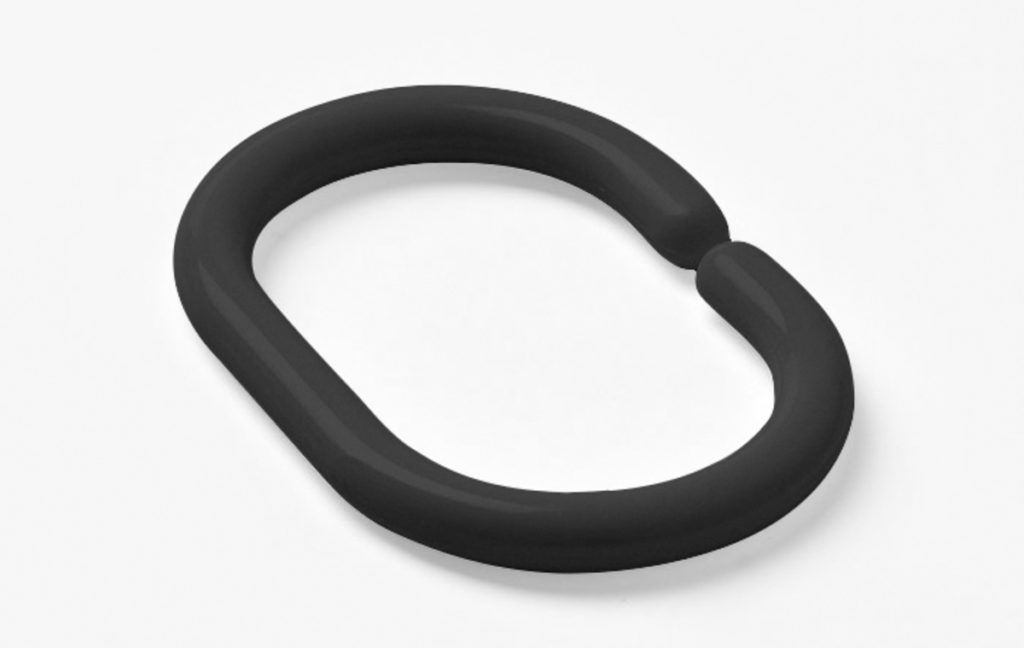 Le kit comprend 12 éléments de forme ovale conçus pour fixer la toile dans la salle de bain. La couleur noire universelle du produit vous permet de choisir le produit en fonction de l'intérieur général de la pièce, ainsi que du style classique ou moderne. Ils auront l'air parfait à la fois sur une tige noire et sur une tige blanche ou argentée.