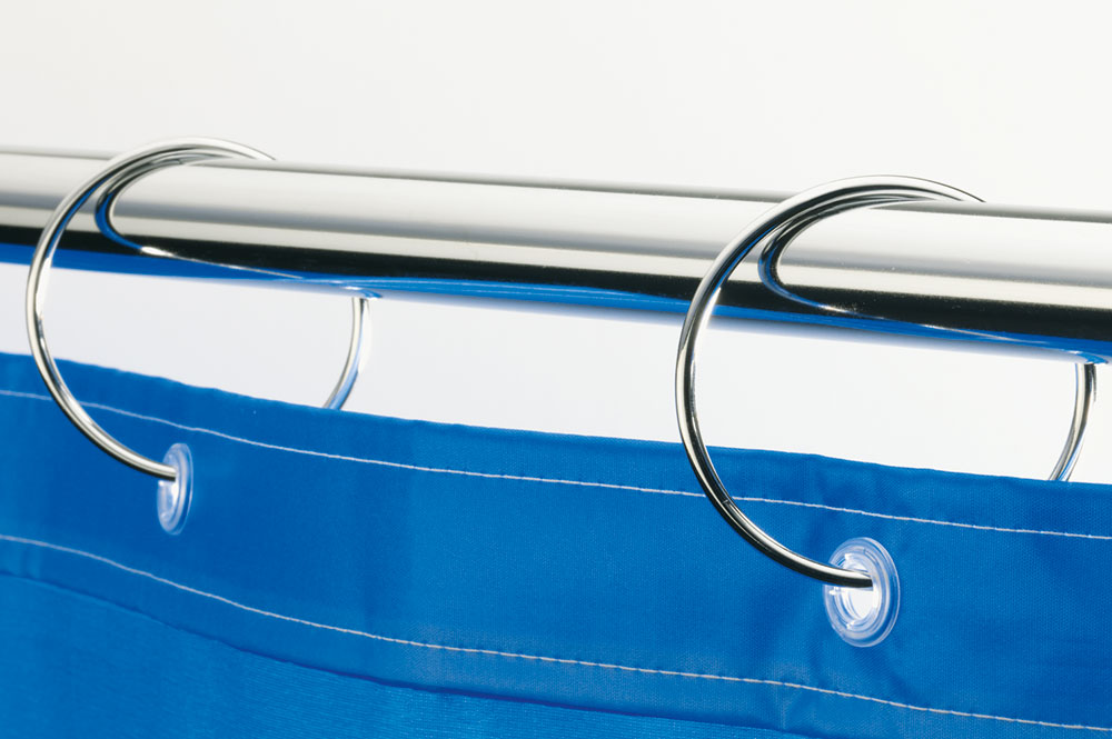 Recommandé pour une installation dans la salle de bain. Ensemble de 12 pièces transparentes. Pour accrocher la toile, les ferrures sont équipées d'un système de clic - l'anneau s'ouvre, une boucle ou un trou dans le tissu est placé dessus et l'anneau peut être refermé. Un tel système est très pratique pour accrocher et retirer la toile.