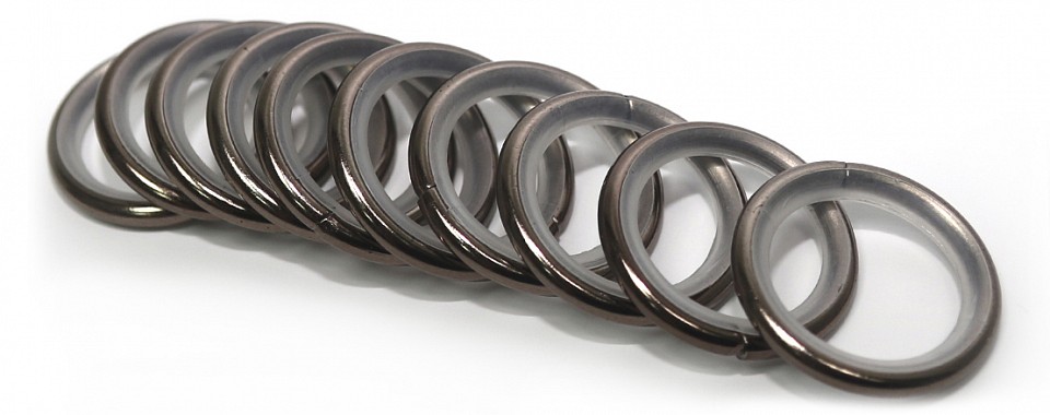 Une autre offre du célèbre fabricant Art Uzor.Un ensemble de 10 articles, la partie extérieure du produit est en métal, il y a du plastique à l'intérieur de l'anneau - cela est nécessaire pour que la conception ne produise pas de sons aigus lorsque le rideau se déplace le long de l'avant-toit.