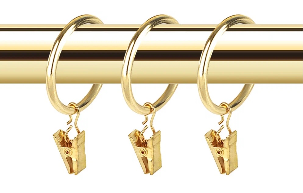 Les accessoires suspendus sont livrés avec des clips pour fixer les rideaux. À l'avenir, il est très pratique de retirer la toile sans affecter les anneaux.