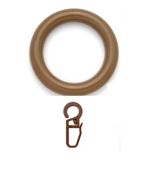 Le kit comprend des anneaux et des clips en quantité de 10 pièces. Diamètre du modèle - 35 mm, épaisseur - 6 mm, convient aux corniches d'un diamètre allant jusqu'à 25 mm.