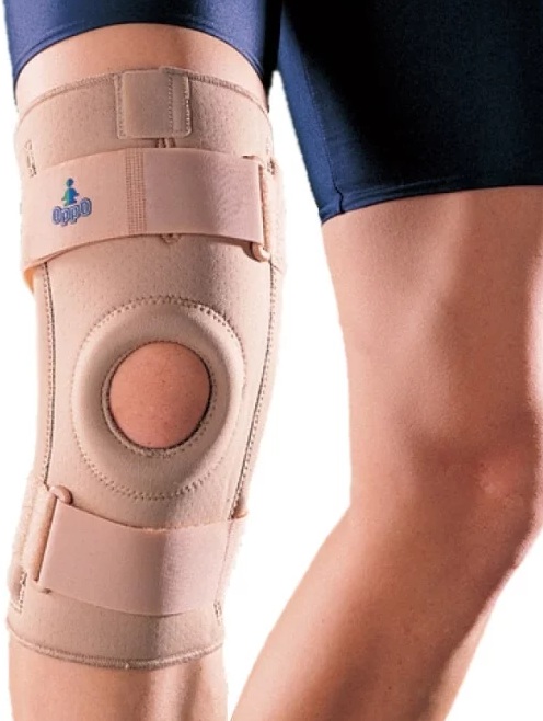 Orthèse chauffante amovible avec velcro et rubans. En raison de la composition des matières premières, élastique. A un trou rond au niveau du genou. Les charnières excluent la possibilité de se plier, ne conservent que la flexion-extension. Ce modèle est le plus souvent utilisé par les sportifs. Toutes les tailles sont disponibles, y compris les enfants.