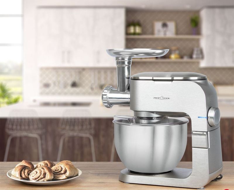 Le modèle professionnel multifonctionnel ProfiCook PC-KM 1151 est solide et fiable, grâce à son corps - le matériau est léger et durable, l'alliage d'aluminium sur lequel tout est monté. D'une puissance de 1300 W, adaptée au matériel professionnel, une moissonneuse-batteuse avec une fonction hachoir à viande : broie les aliments, fourre les saucisses dans divers boyaux. A l'aide de douilles pour biscuits, il est facile de façonner la pâte, donnant à la confiserie une forme originale.