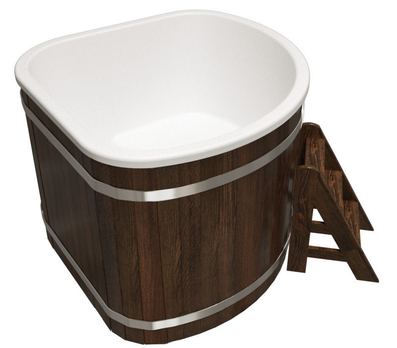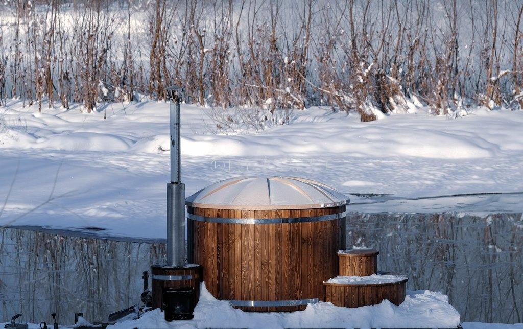 Avec un insert en polypropylène durable et résistant au gel, recouvert de mélèze, chêne, frêne. Peut être installé sur une base préparée, adaptée à l'approfondissement. Le poêle à bois en acier intégré chauffe l'eau dans le bol jusqu'à 40 degrés, même dans les gelées les plus sévères.