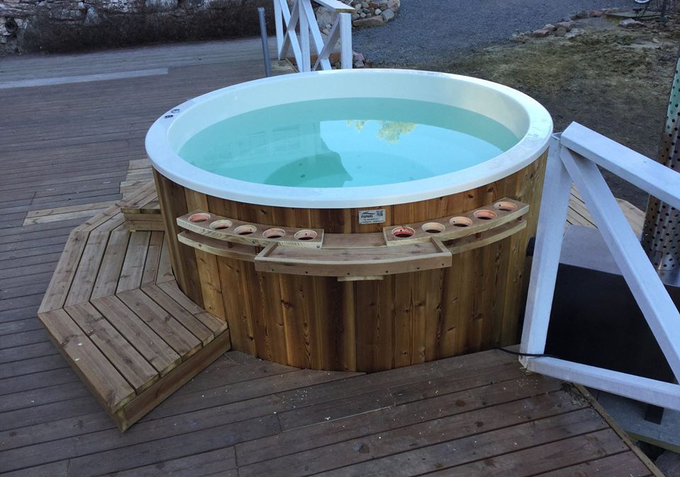 Avec un bol en plastique doublé de lamelles de cèdre, avec une échelle et un système de vidange pratique. Convient aux maisons privées et aux entreprises. Peut être installé à l'extérieur et à l'intérieur.
