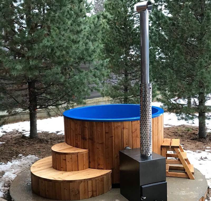 Avec poêle électrique ou à bois encastré ou extérieur. Le récipient est en polypropylène de 5 mm d'épaisseur, la finition extérieure est en cèdre de Sibérie. L'épaisseur du bois est de 40 mm. Échelle maigre, le poêle lui-même avec une cheminée est inclus dans la livraison. Housse de protection, pare-étincelles vendus séparément.